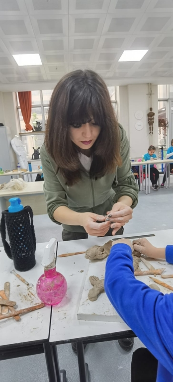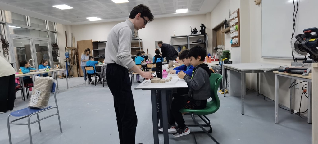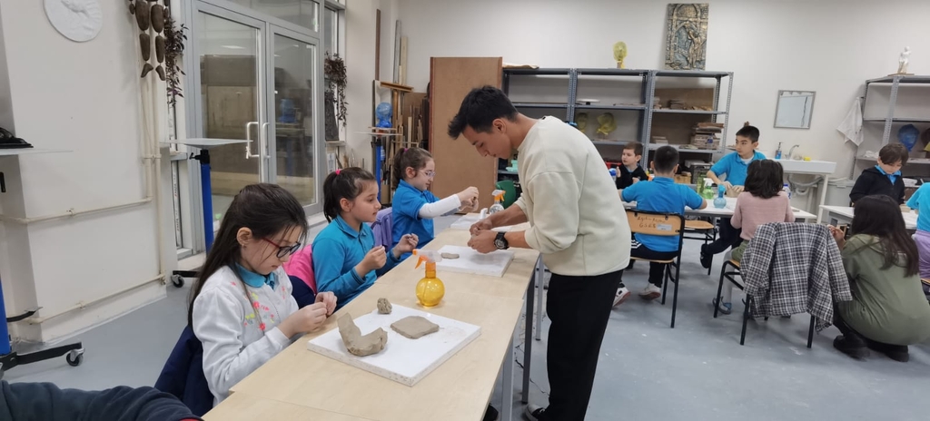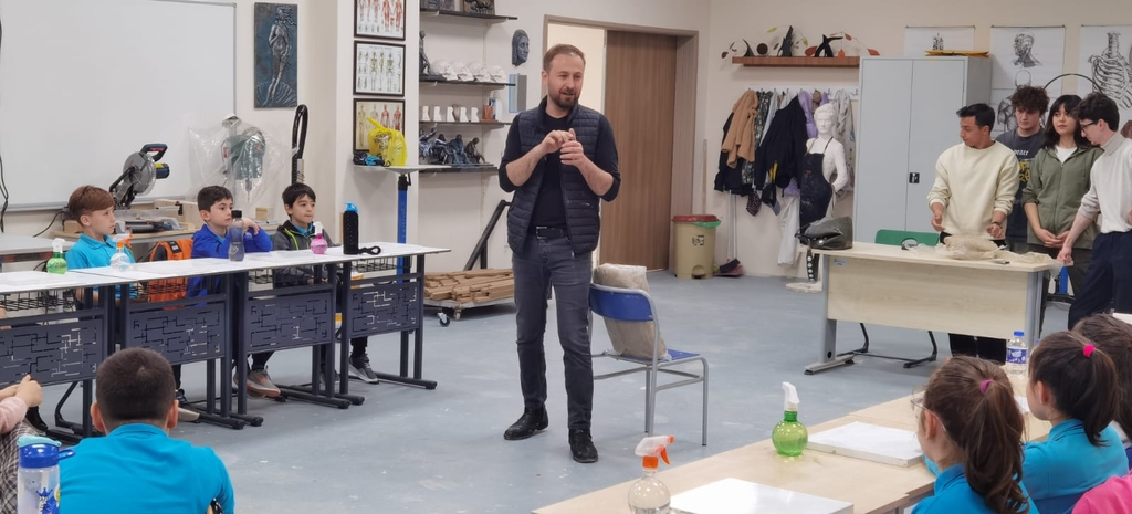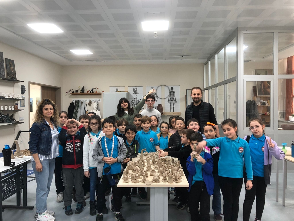 Üniversite ve bölüm ziyareti kapsamında gerçekleştirilen etkinlikte 15 Temmuz İlkokulunda okuyan 2. Sınıf öğrencileri ile güzel sanatlar eğitimi bölümü atölyeleri gezilmiş, heykel atölyesinde Dr. Öğr. Üyesi İsmail Eyüpoğlu rehberliğinde kil heykel etkinliği gerçekleştirilmiştir.